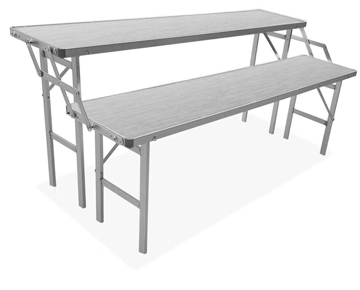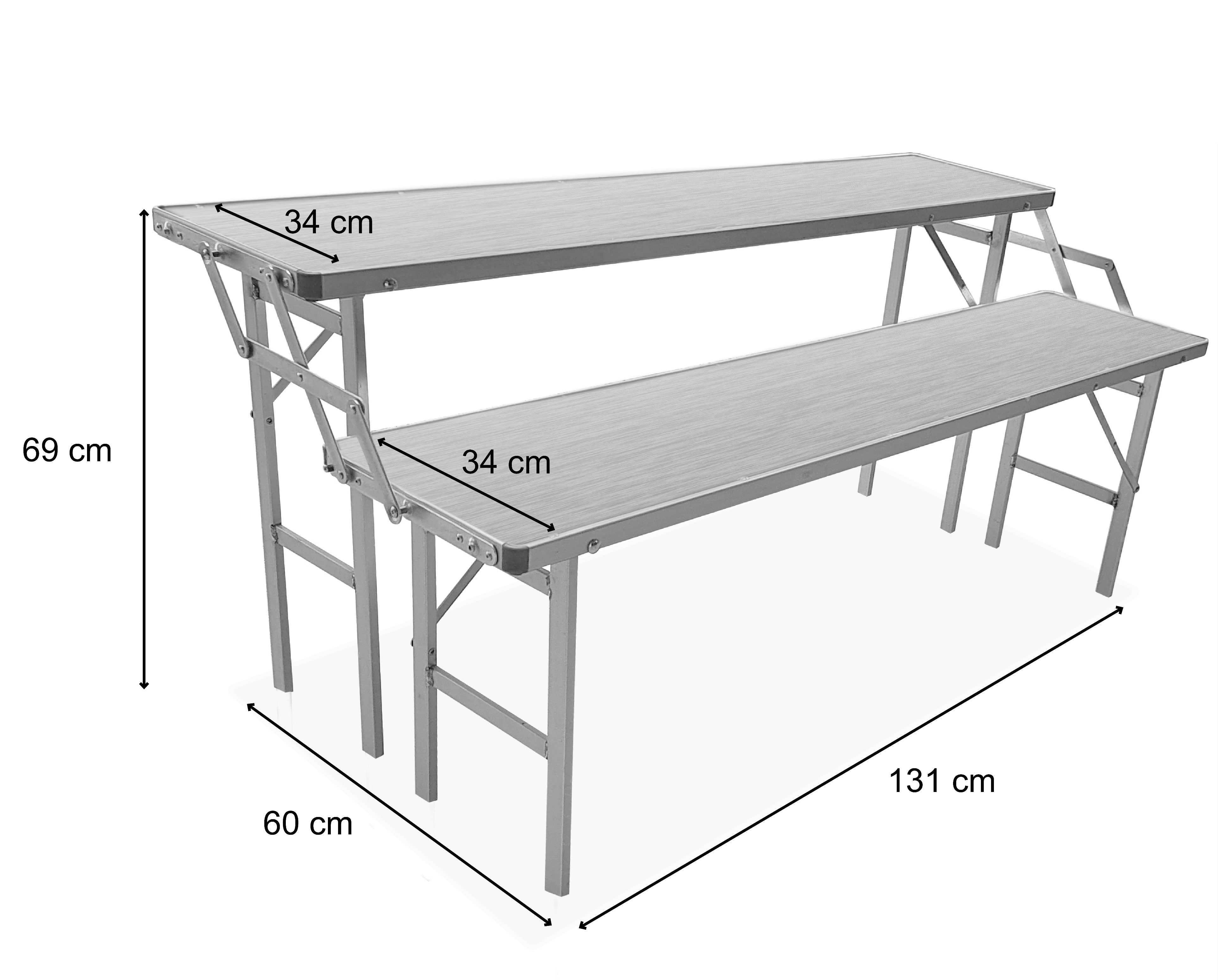 Table aluminium Escalier 2 étages, plateau tout en alu, idéale pour vos marchés, brocantes, présentations, foires, buffet...